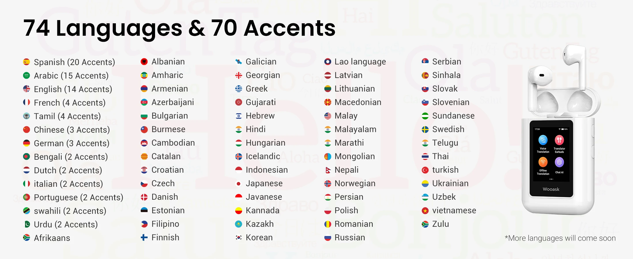 The Wooask A8 innovatively combines translation earbuds and a standalone translator, supporting 144 online languages + 16 offline packs for convenient, app-free communication.