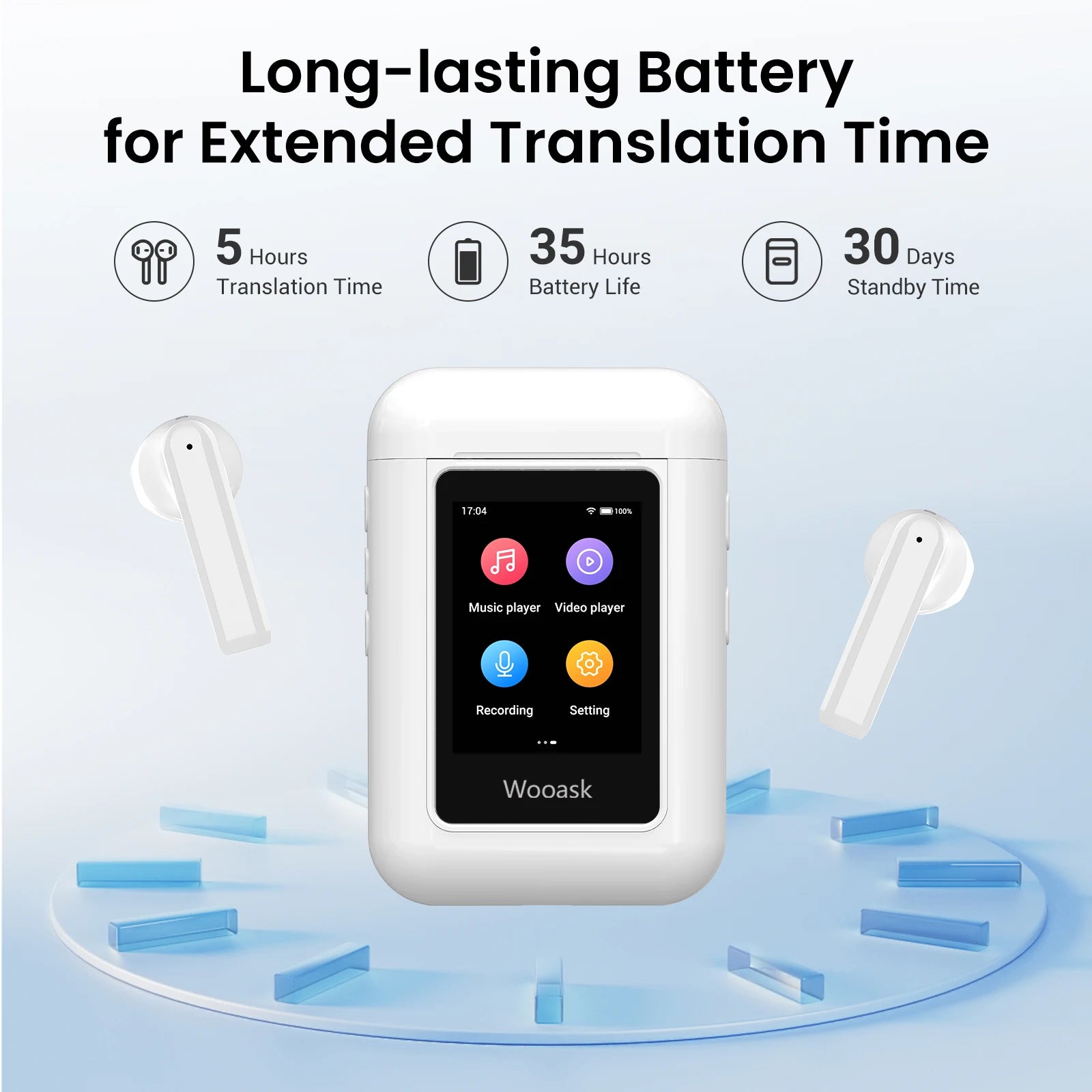 Wooask-A8 AI Translator Earbuds with Touch Screen,2 in 1 Real Time Voice Translation Earphones, Two-way Translator,NO WiFi Need